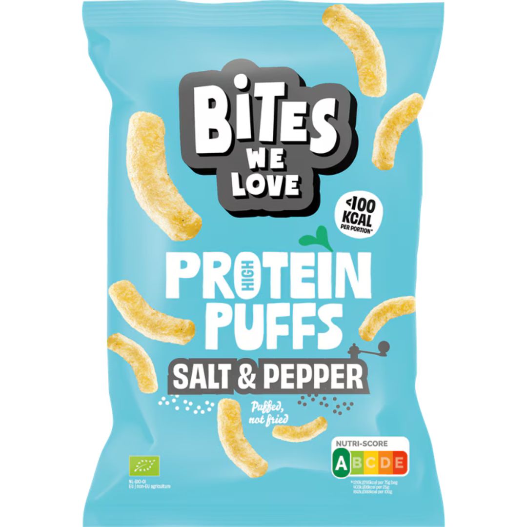 - BitesWeLove Proteïn Puffs Salt & Pepper € 1,69