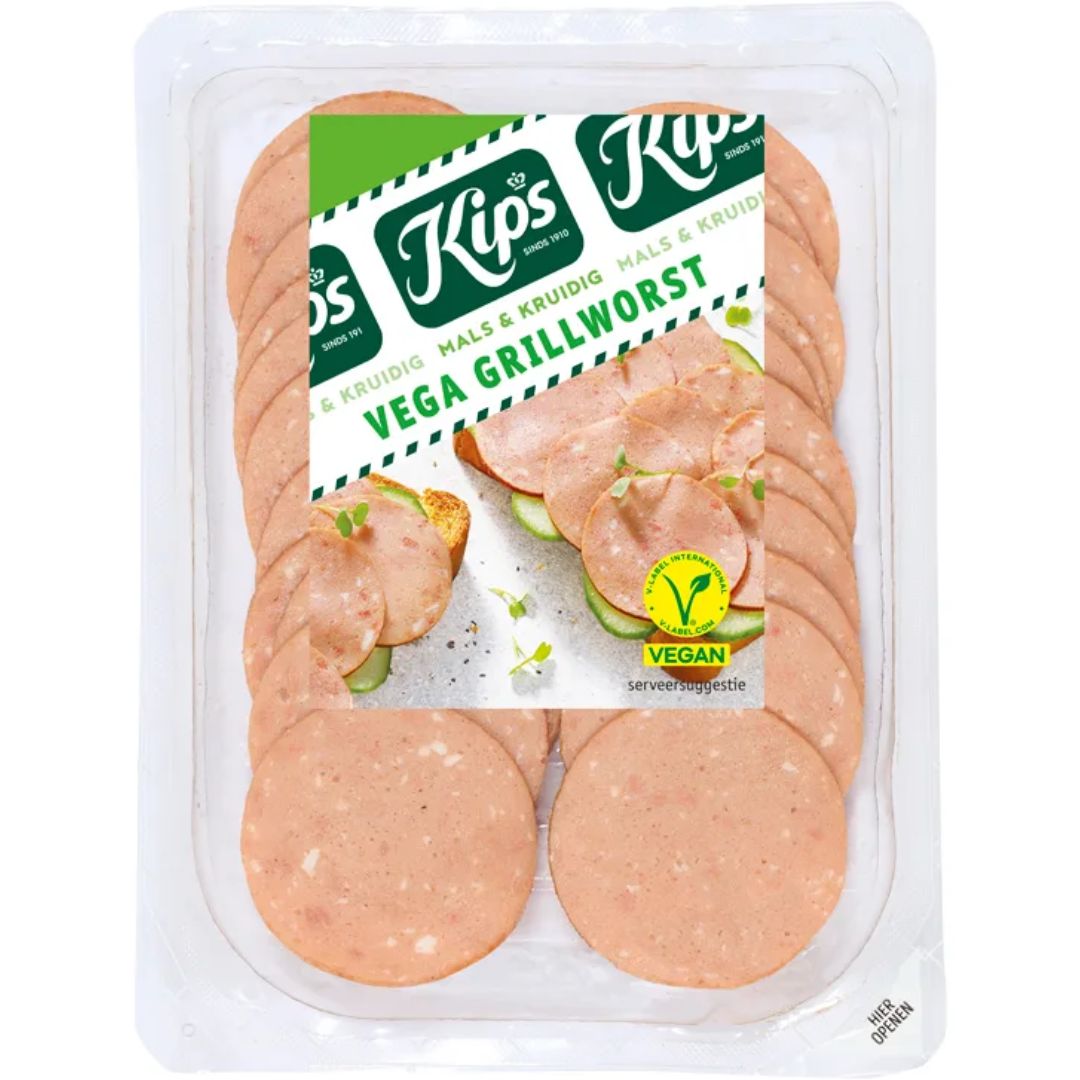 - Kips Vega plakjes grillworst € 2,49